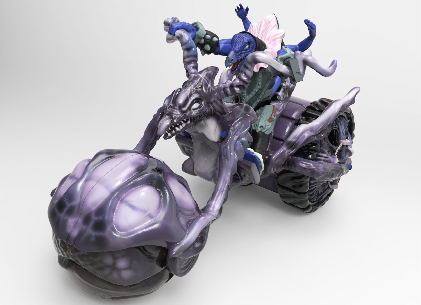 The Dark Crystal: Roads of Rebellion is a hypothetical vehicle toy line based on Jim Henson's Dark Crystal Series. Pictured is the Villain SkekNa action figure Riding his "SkekCycle". To see more about this toy line, click here