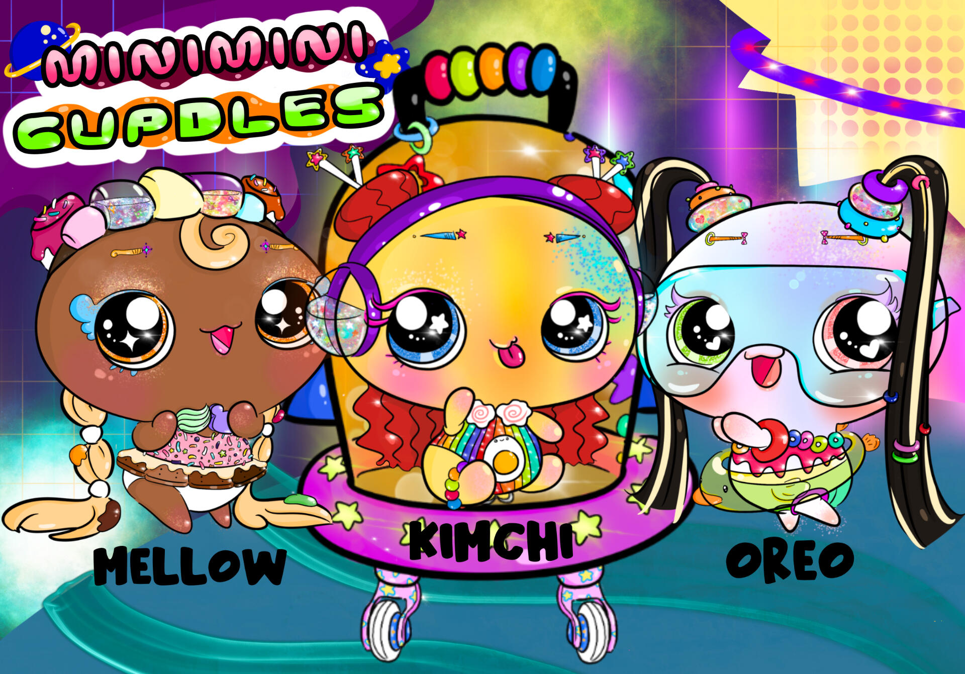 Mini Mini Cupdles are cute aliens character who want to be the cuddle friends for children on Earth! Kimchi from the spicy ramen planet, Oreo from the cool cereal planet, and Mellow is from the sweet cocoa planet!