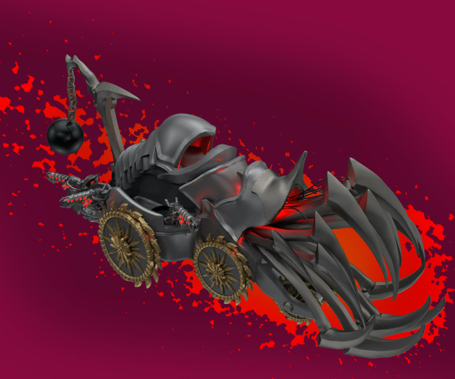 The Demon Grinder is the ultimate Hellfire Engine to bring fear and destruction through the nine hells. It’s interchangeable weapons seat up to 6 figures and a driver opening up a new way to experience the high octane chases through Avernus.