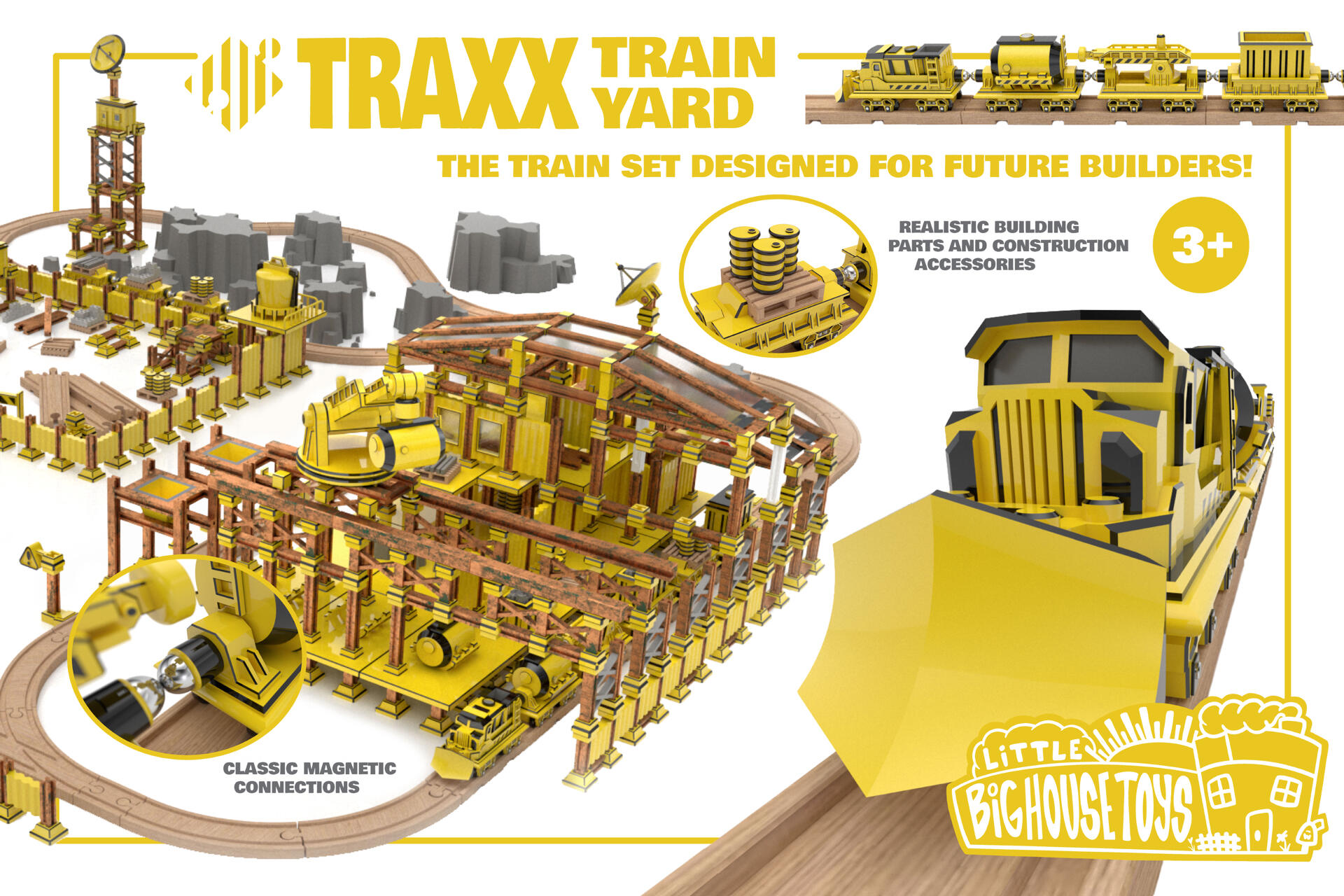 Traxx Trains is a train line for boys three and up that provides classic wooden train play with expansive construction building features!